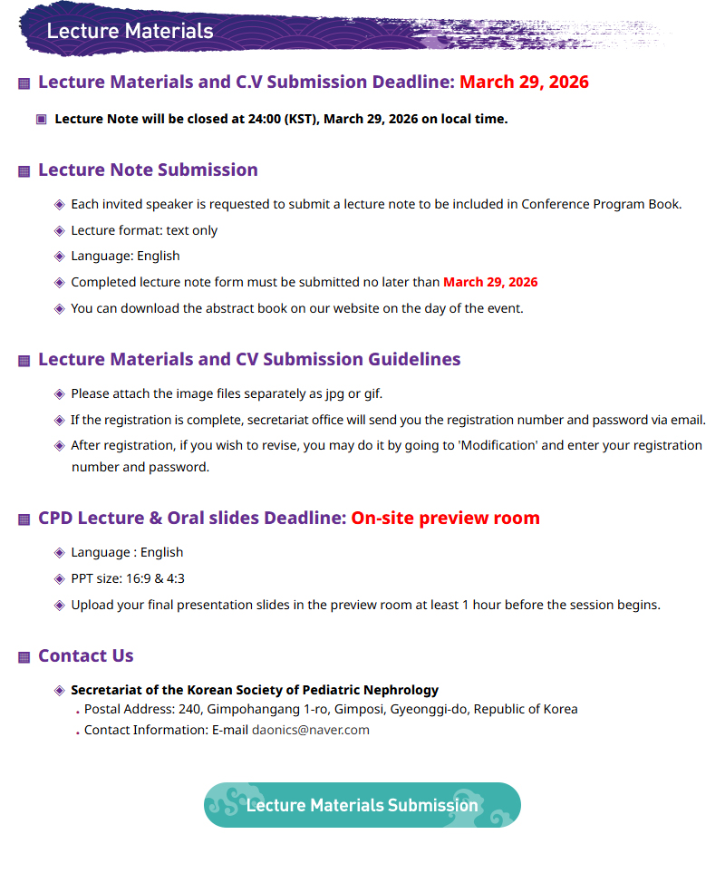 [초록접수][사전등록 접수] 2026년 대한소아신장학회 춘계학술대회 및 제26회 연수강좌 안내